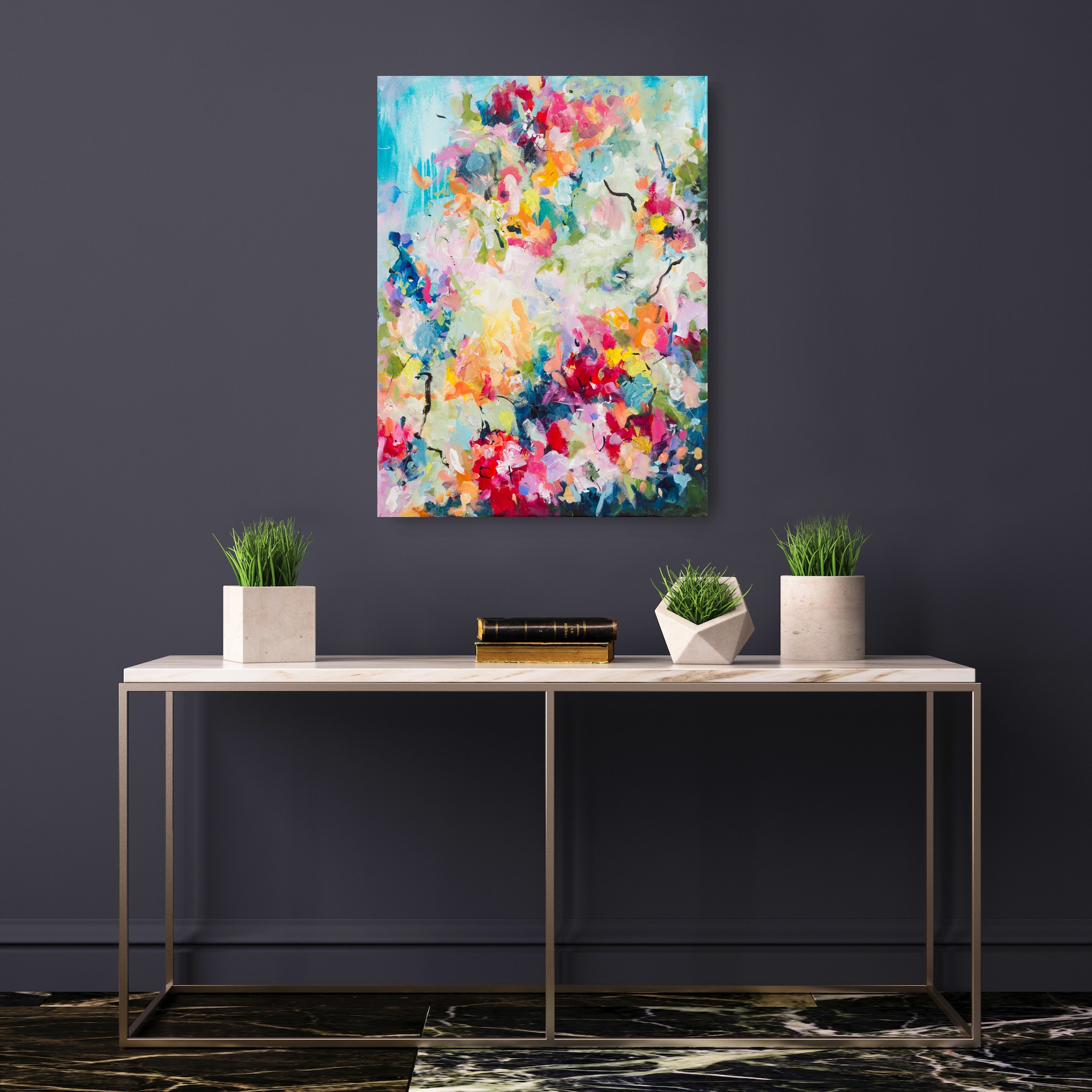 Hoe vertel je iemand die geen kleuren kan onderscheiden hoe mooi de regenboog is? Hoe vurig en warm rood 'voelt', hoe zonnig en stralend geel, en hoe verfrissend en kalmerend blauw en groen? Dit schilderij herinnert je eraan om de pracht van de natuur niet voor lief te nemen.