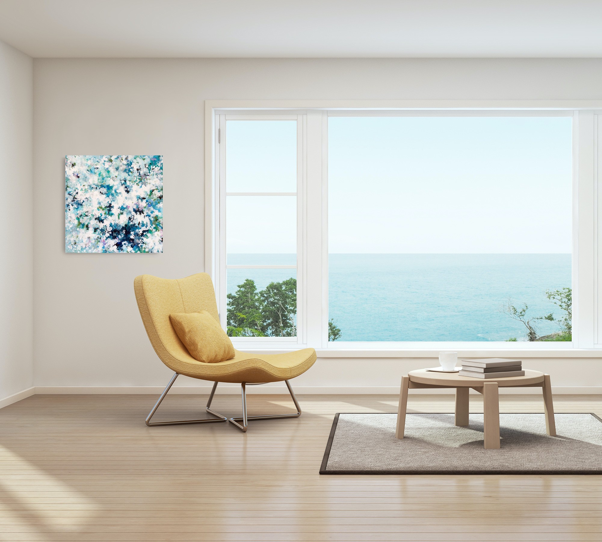 Net als 'Emergence' is dit schilderij een krachtig explosief beeld. Een golf van kolkend opspattend water, die zich even losmaakt van het water, om daarna weer op te gaan in de oceaan.