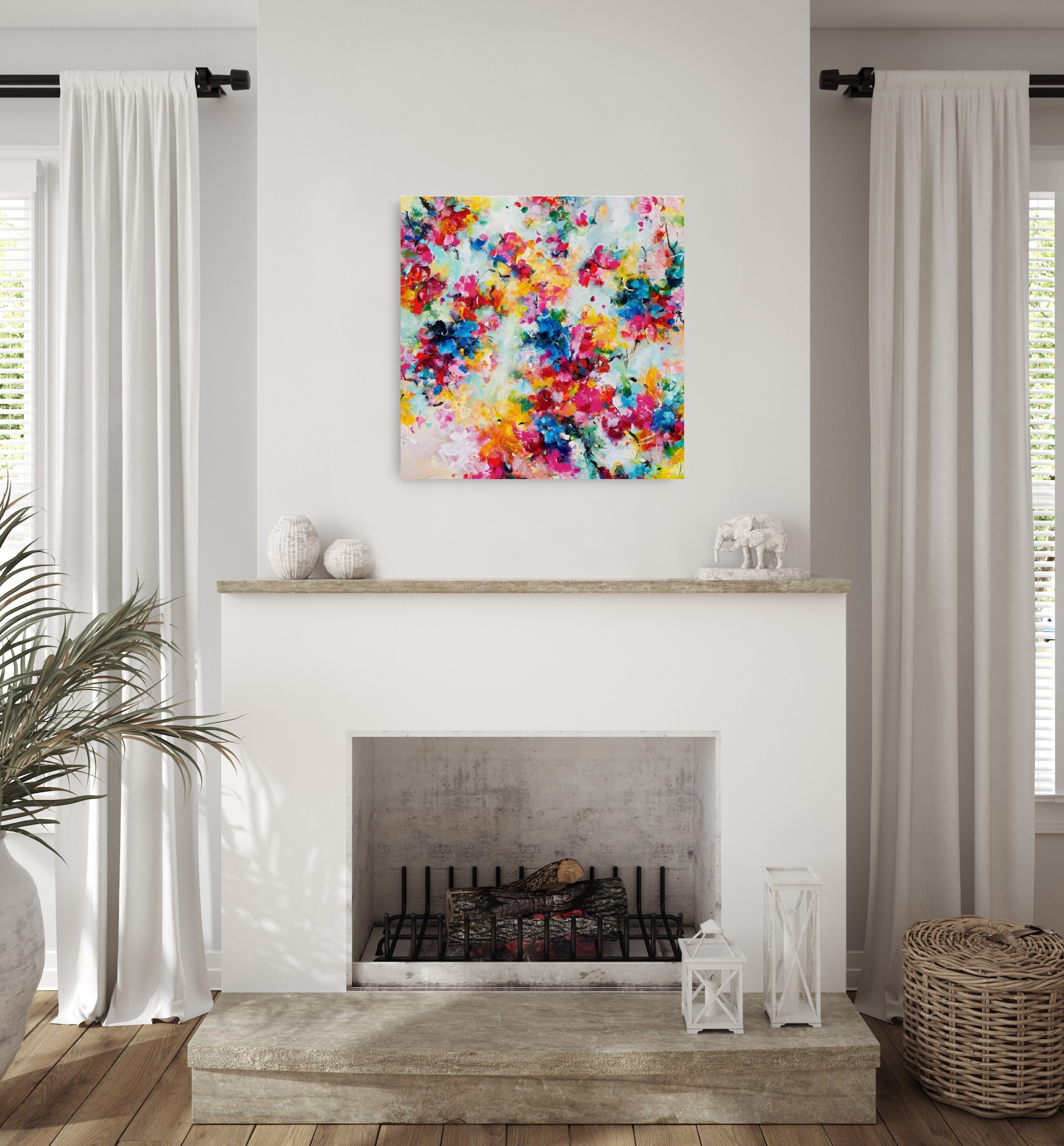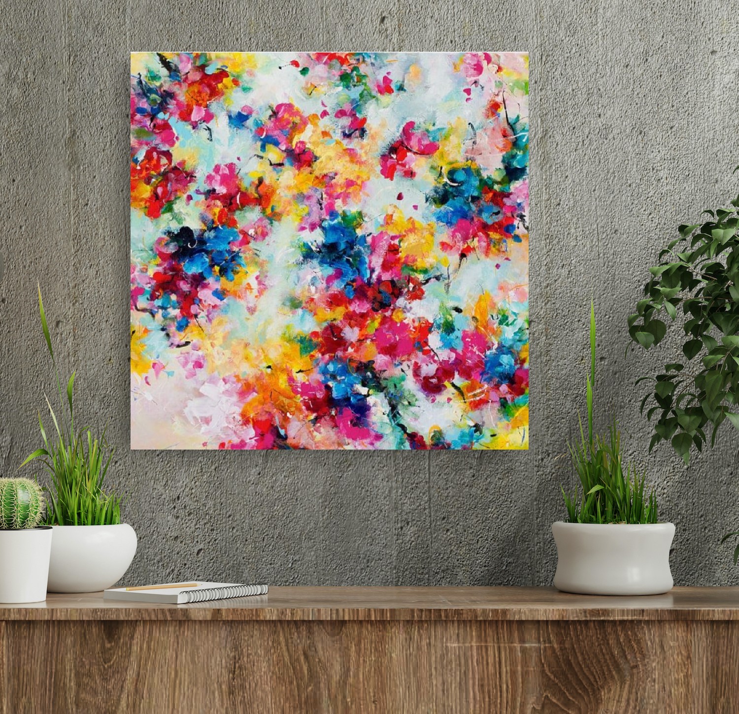 Met dit uitbundig bloeiende schilderij haal je die vrolijkheid het hele jaar in huis!